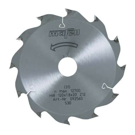 Mafell Sägeblatt-HM, 120 x 1,2/1,8 x 20 mm, Z 12, WZ, für Längsschnitte in Holz - 092560